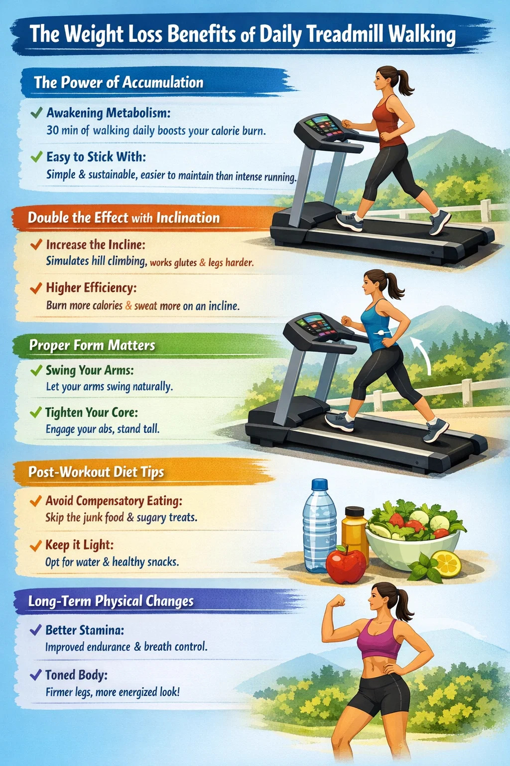 تحسين شكل الجسم: يؤدي المشي السريع المنتظم على جهاز المشي إلى تقوية عضلات الساق، مما يجعلك تبدو أكثر نشاطًا وحيوية، بما يتجاوز مجرد التغيرات في الأرقام على الميزان.