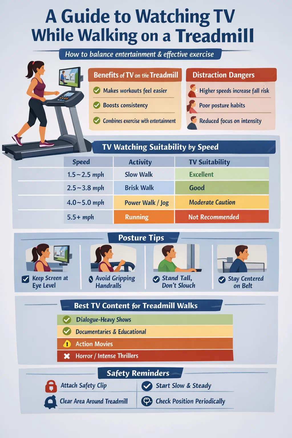 تعتمد مدى ملاءمة مشاهدة التلفاز بشكل كبير على سرعة جهاز المشي الخاص بك وطبيعة التمرين. فيما يلي تفصيل مباشر:
